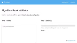 The Algorithm Rank Validator is an AI tool for Twitter developers to optimize tweet performance.