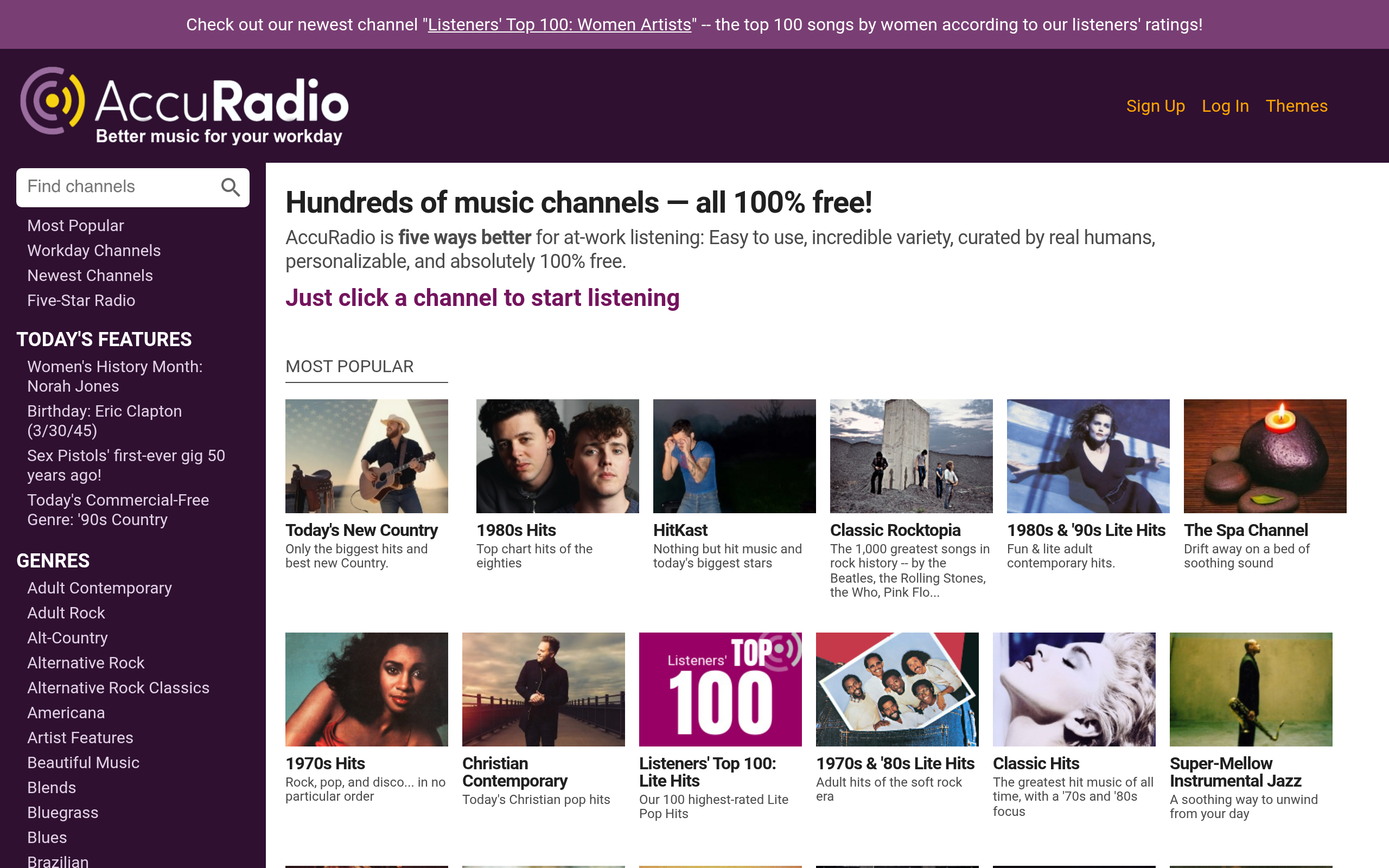 AccuRadio offers hundreds of curated music stations by genre. Free streaming with no signup required.