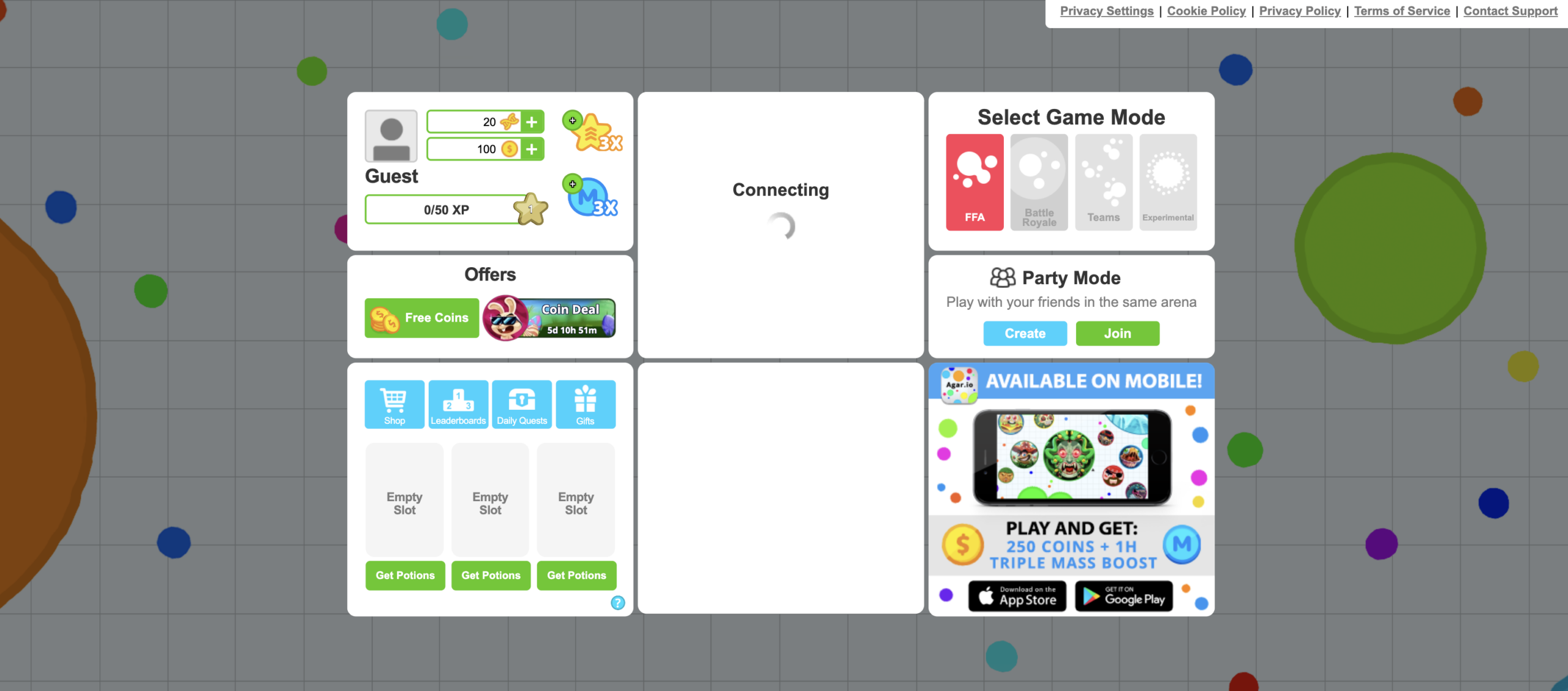 Agar.io is free with optional cosmetic skins available for purchase. No download required.