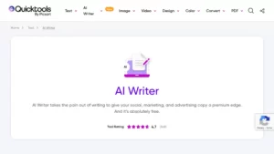 AI Writer is a complimentary tool designed to generate high-quality and captivating content for social media, marketing, and advertising purposes. It provides various text creation utilities, including an ad copy generator, a slogan producer, a paraphrasing tool, and more. This versatile tool proves incredibly useful for producing SEO-optimized copies, social media posts, marketing resources, and the like. With its user-friendly interface, AI Writer ensures convenience and requires no registration process.