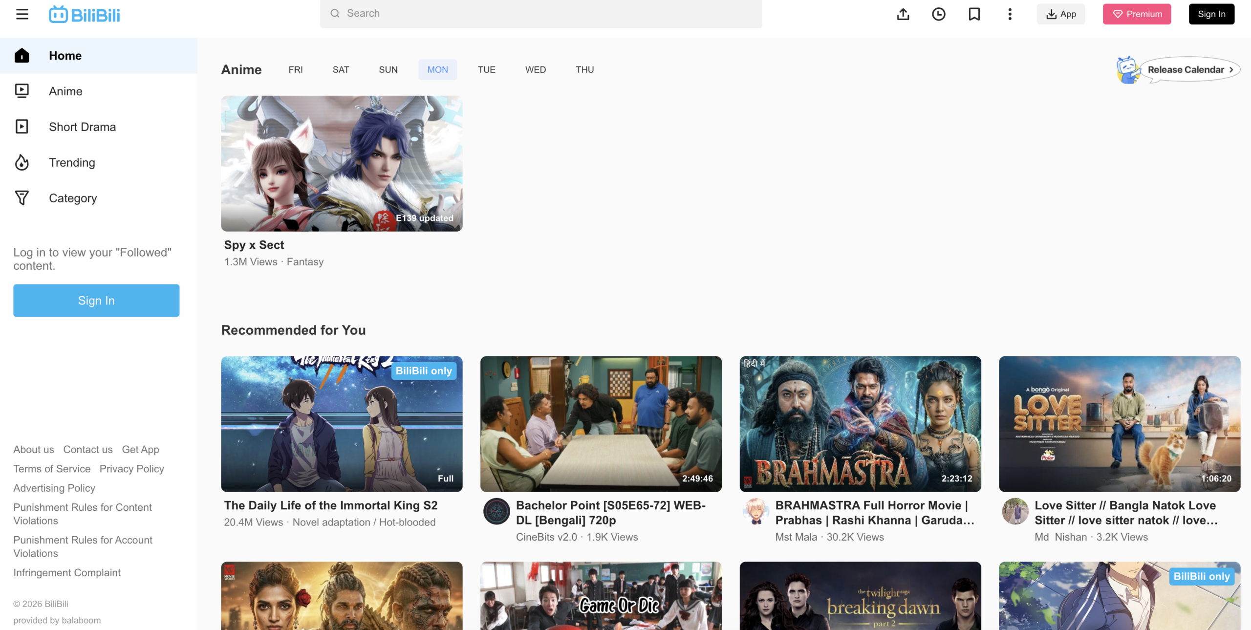 Bilibili.tv is a modern streaming platform offering Asian anime catalogs with strong subtitle support. The service provides a freemium model with free and premium content options.