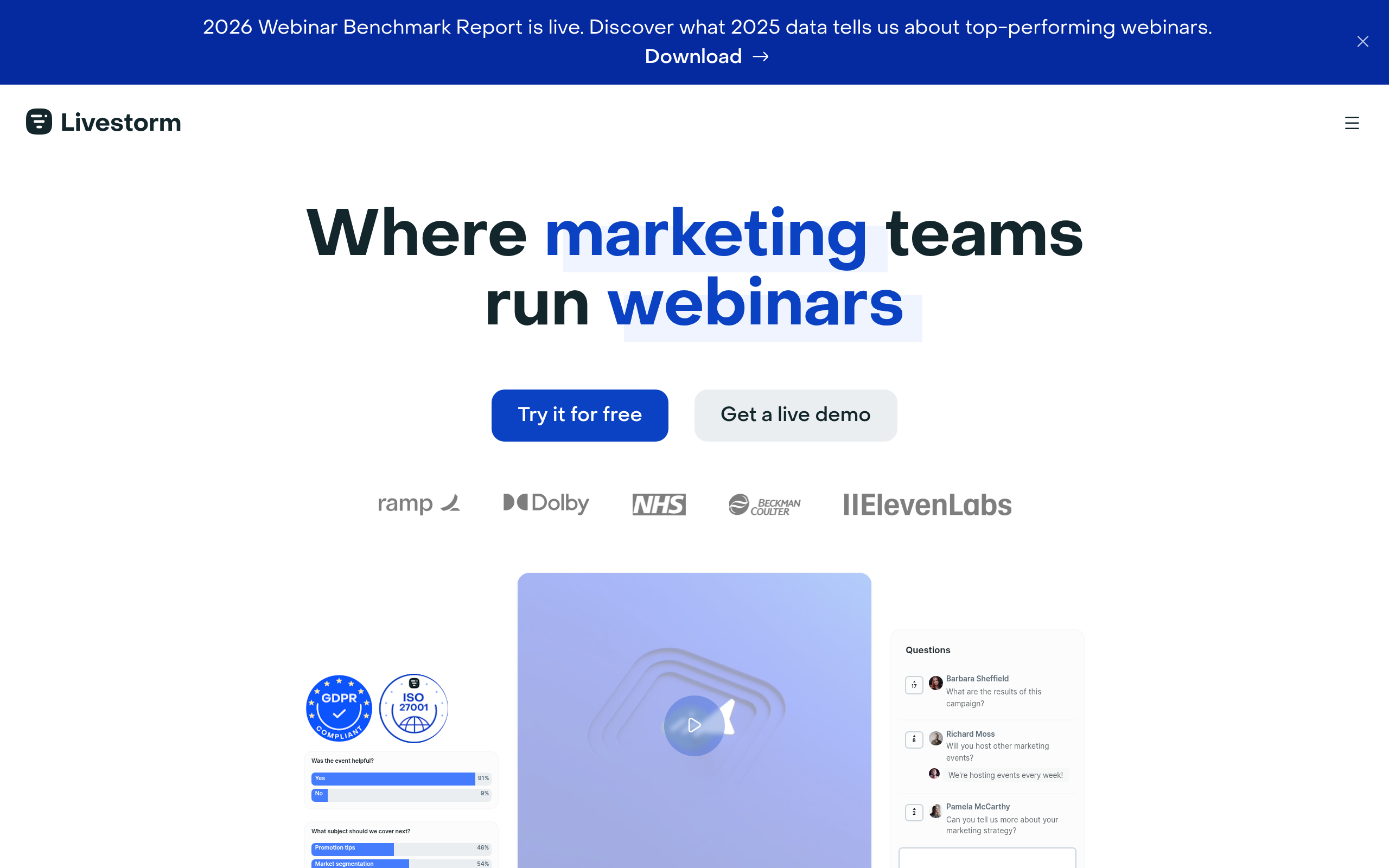 Livestorm is a modern video engagement platform that handles webinars, virtual events, and online meetings through a single browser-based interface. Designed for teams that value aesthetics and user experience, Livestorm offers a polished, professional presentation layer that elevates brand perception and attendee engagement.