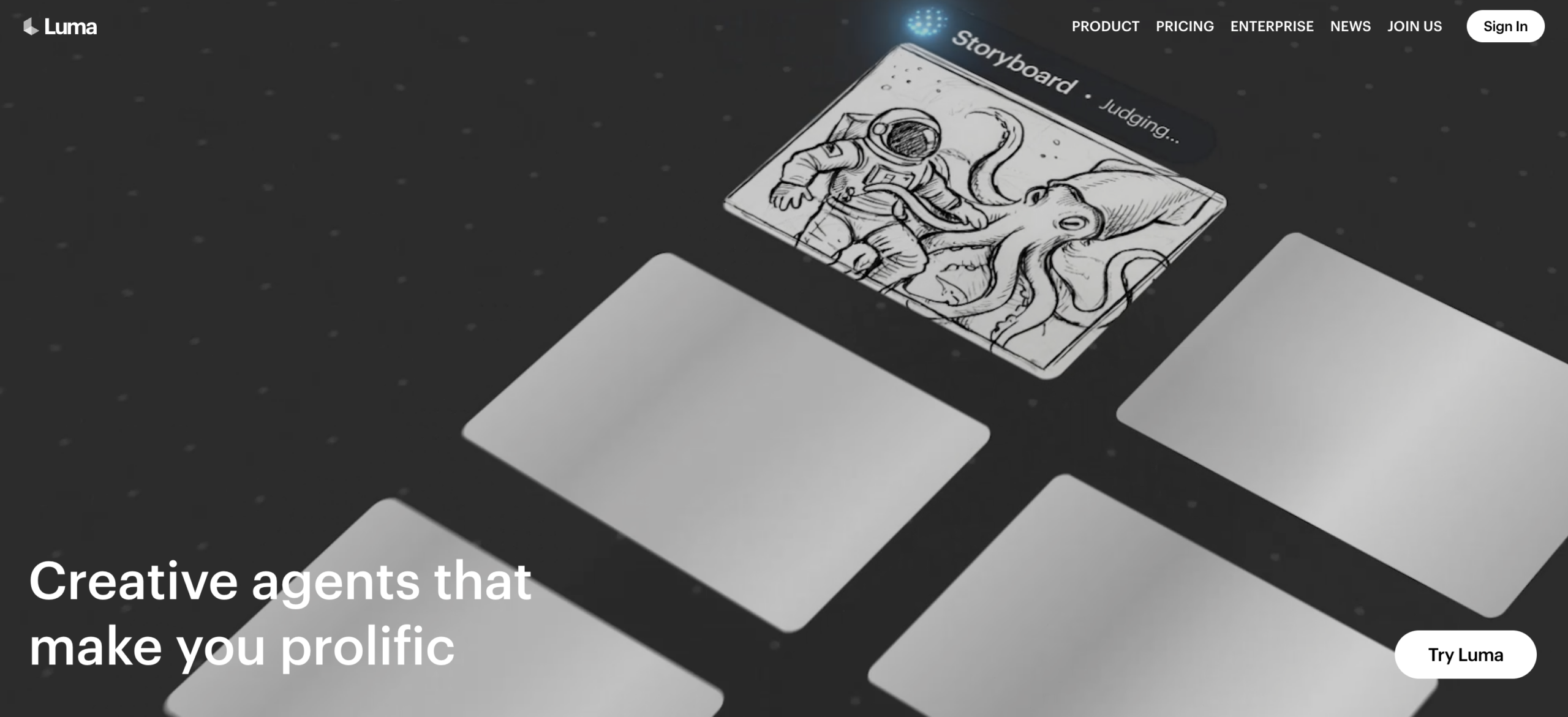 Luma AI is a creative platform that uses AI agents to take ideas from concept to finished media in seconds.