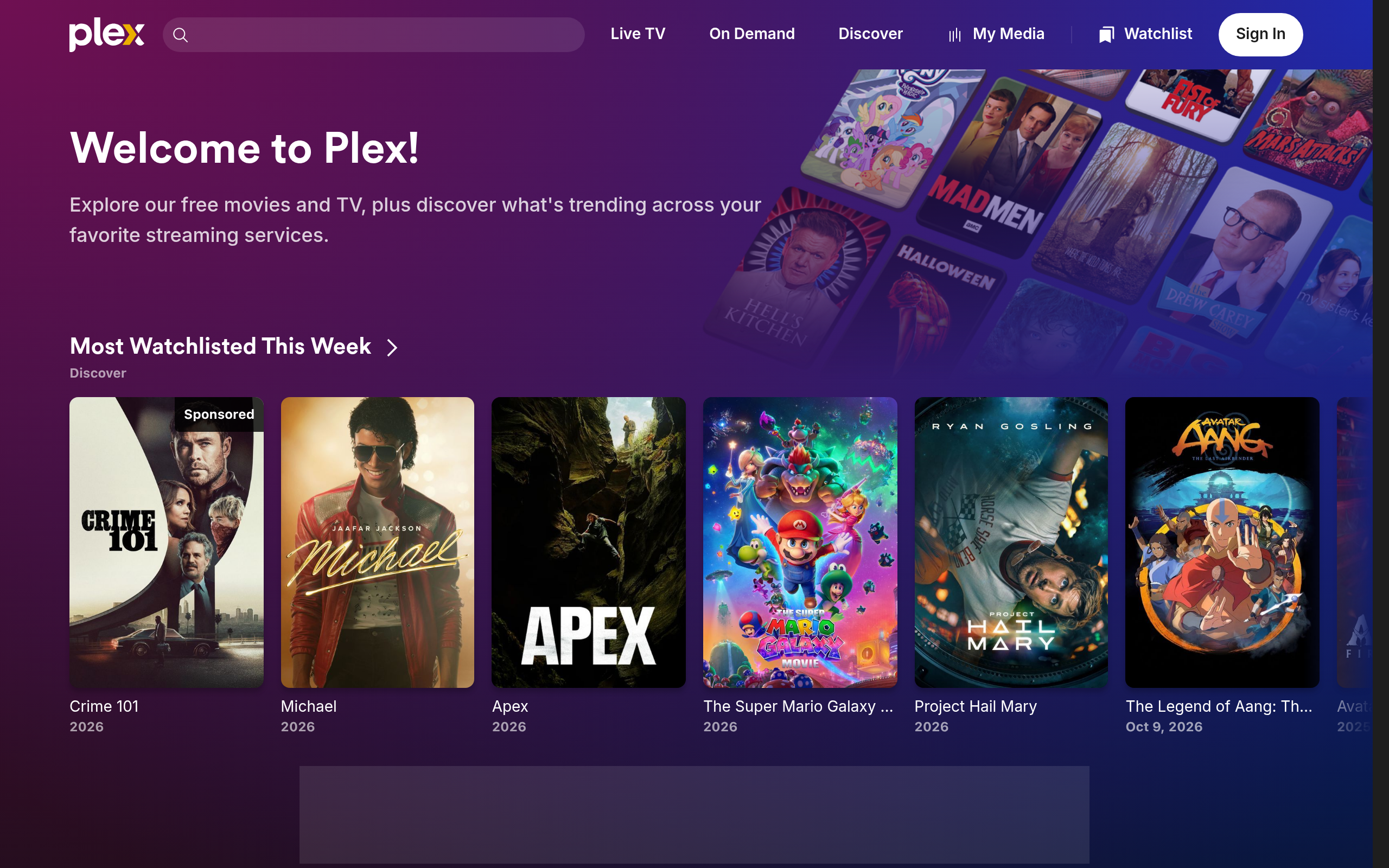 Plex TV helps you find the perfect movie to watch tonight for free. As a comprehensive media platform, Plex combines personal media streaming with a robust selection of free ad-supported movies, TV shows, and live channels.