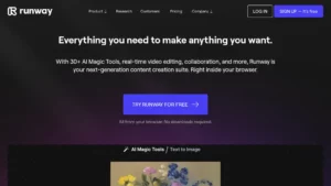 Runway is an AI tool that offers over 30 AI magic tools for editing content, including text, image, and video. Some of its features include AI training, color grading, green screen, and super-slow motion. Runway’s Gen-1 tools allow users to generate videos and images, expand and reimagine images, and erase and slow down videos, among other things. The tool has been praised by creatives for its ability to save time and improve the editing process. Runway is also committed to empowering the next generation of storytellers and has a product division called Runway Studios.