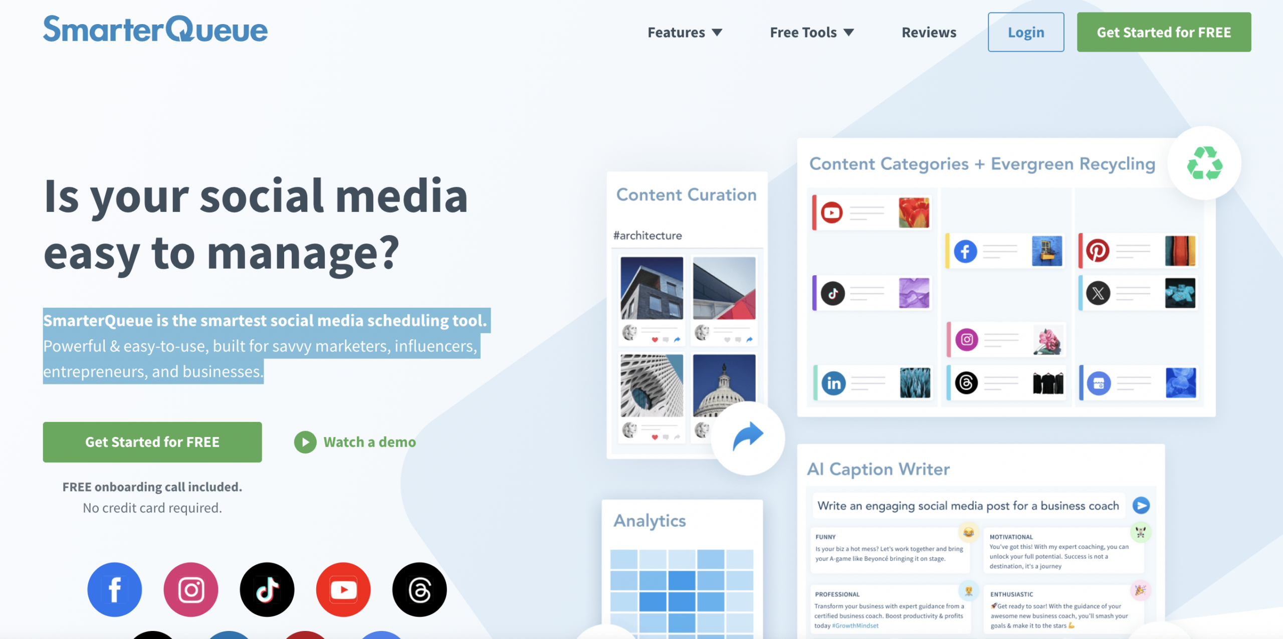 SmarterQueue is a powerful and easy-to-use social media scheduling tool, built specifically for marketers, influencers, entrepreneurs, and businesses.