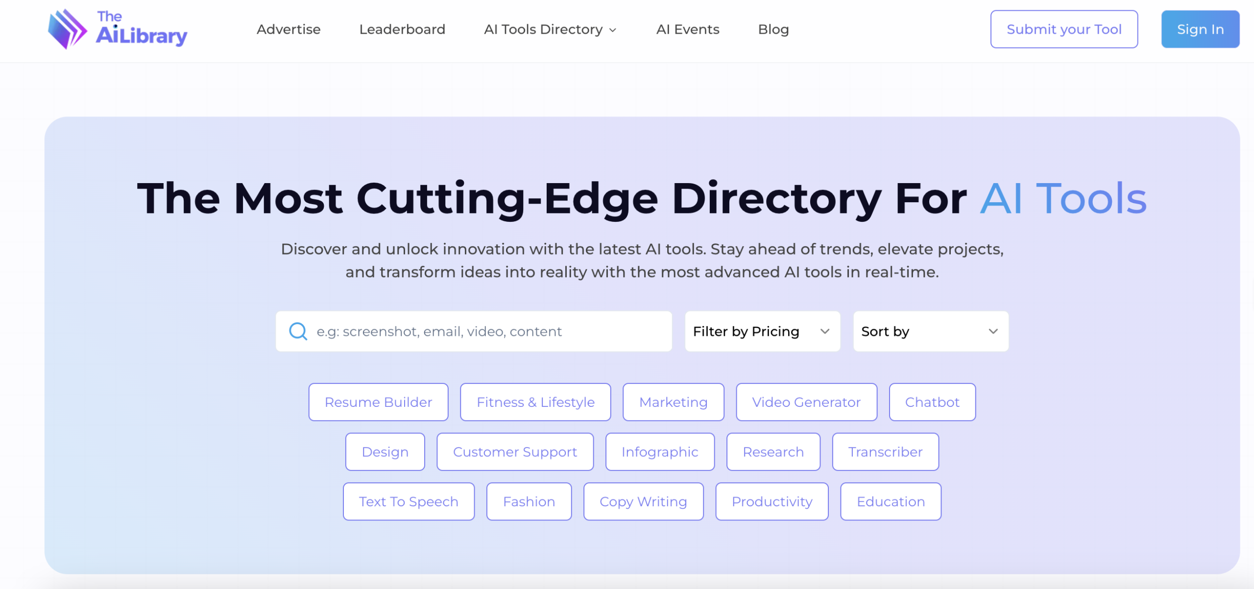 AI Library is a cutting-edge website that offers a wide range of AI tools to help users unlock innovation and stay ahead of trends. With the rapid advancements in technology, it can be challenging to keep up with the latest tools and techniques. That’s where AI Library comes in – it provides a centralized platform for users to explore and utilize the latest AI tools to elevate their projects and transform their ideas into reality.