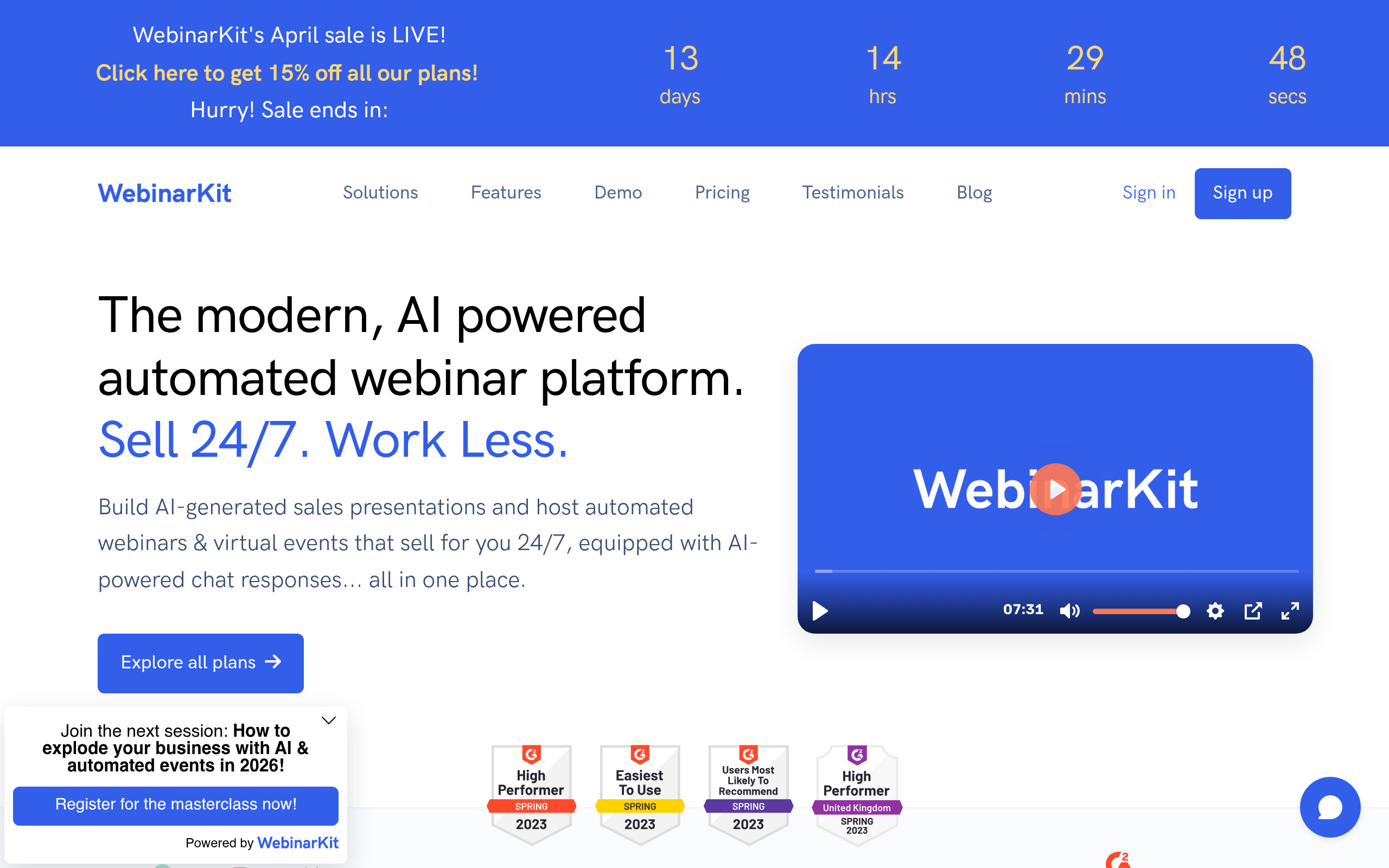 WebinarKit supports both live and hybrid webinar formats, giving users flexibility in their presentation style. The platform handles video hosting, streaming delivery, and audience interaction tools including polls, Q&A, and offers. For businesses seeking a cost-effective webinar solution that prioritizes automation and conversion optimization, WebinarKit delivers essential features without the enterprise price tag.